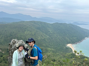 先ずはSharp Peak登山入口の蚺蛇湾を目指し悪路を進みます。遥か彼方にくっきり見える頂きを感じつつ、1.5時間程度で海岸に到着。ここまでだけでも、レベル3ぐらいの難易度のなかなか険しい獣道でした。。。ビーチでは可愛いらしい仔牛に出迎えていただきました。雄大な大海原でビーチの奥まで歩き、奥に隠れた登り口からいよいよSharp Peakの登山開始です。いきなり補助用のロープが設置されている程の急な登り一同を少し不安にさせます。そこからひたすらほぼ一直線に登っていきます。時折、下を見ると、蚺蛇湾の美しいビーチが登りの疲れを癒してくれます。天候も爽やかで、晴れ間も見えるようになりました。後半は木々の間を登り、上方が見えないのですがそこを這いつくばいながら登っていくと三角点が見えゴールです。頂上からの広大な青な海や白く延びる海岸線・青い空・緑の山々等360度の絶景を堪能しました。